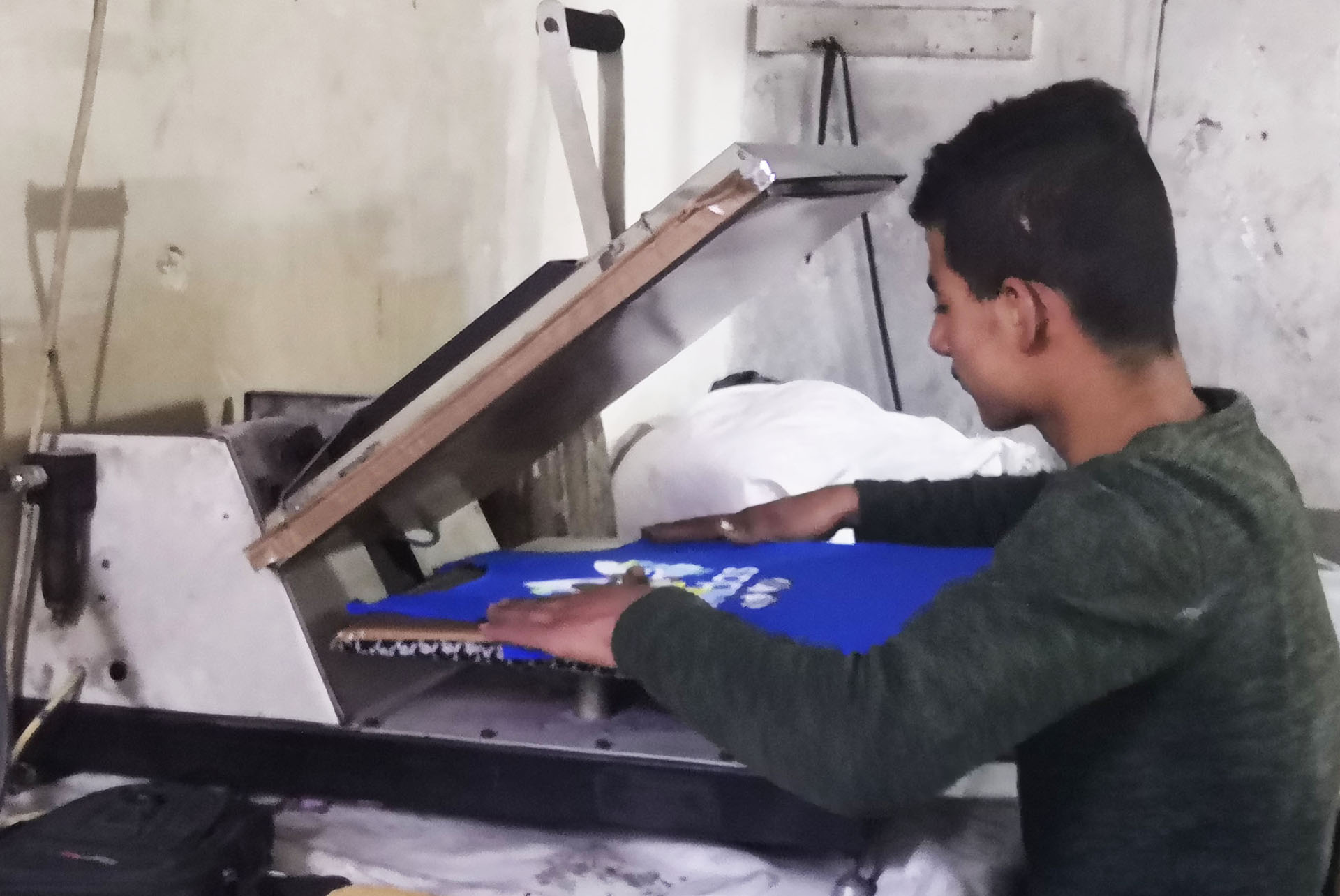 Billedet: Zaid var nedslidt i en alt for ung alder. På erhvervsuddannelsesprojektet valgte han at uddanne sig på et stoftrykværksted, hvor han både fysisk og mentalt kan holde til arbejdet.